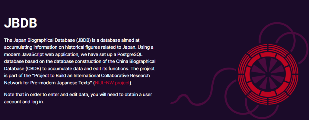 *JBDB is one of the collaborative projects of  NIJL’s “Project to Build an International Collaborative Research Network for Pre-Modern Japanese Texts” https://www.nijl.ac.jp/pages/cijproject/index.html.